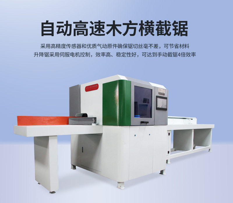 2.穩(wěn)定高效:升降鋸采用伺服電機控制,效率高、穩(wěn)定性好,可達到手動截鋸4倍效率,可以成捆的裁切木方。