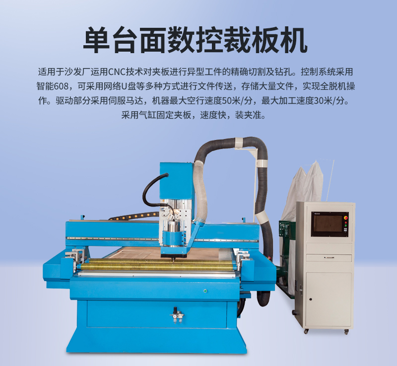 2.適用于沙發(fā)廠運(yùn)用CNC技術(shù)對(duì)夾板進(jìn)行異型工件的精確切割及鉆孔。