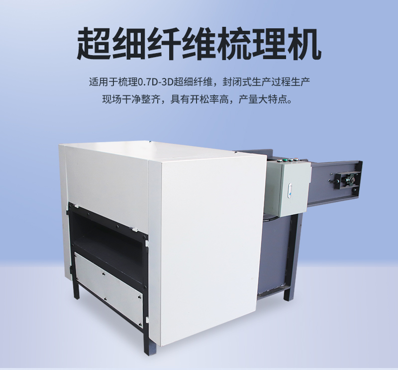 1.超細(xì)纖維梳理機(jī),整機(jī)采用全封閉式,外形整齊美觀大方,自帶保護(hù)裝置,操作簡(jiǎn)單安全可靠,吊運(yùn)安裝方便。