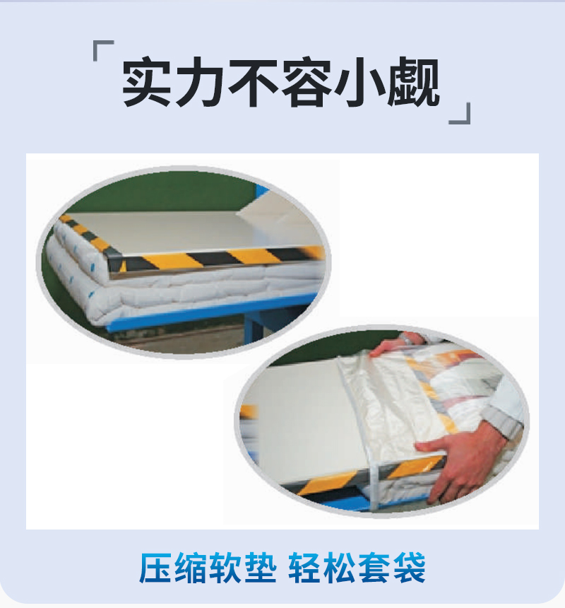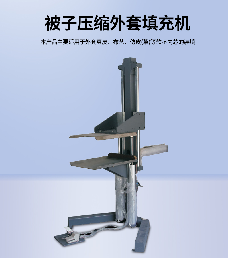 1.被子枕頭壓縮外套填充機(jī)適用于多個(gè)枕頭或者軟墊的壓縮套袋,針對(duì)于人工套袋費(fèi)時(shí)費(fèi)力而且套袋效果不平整的情況下,這款機(jī)器解決了以上難點(diǎn)。